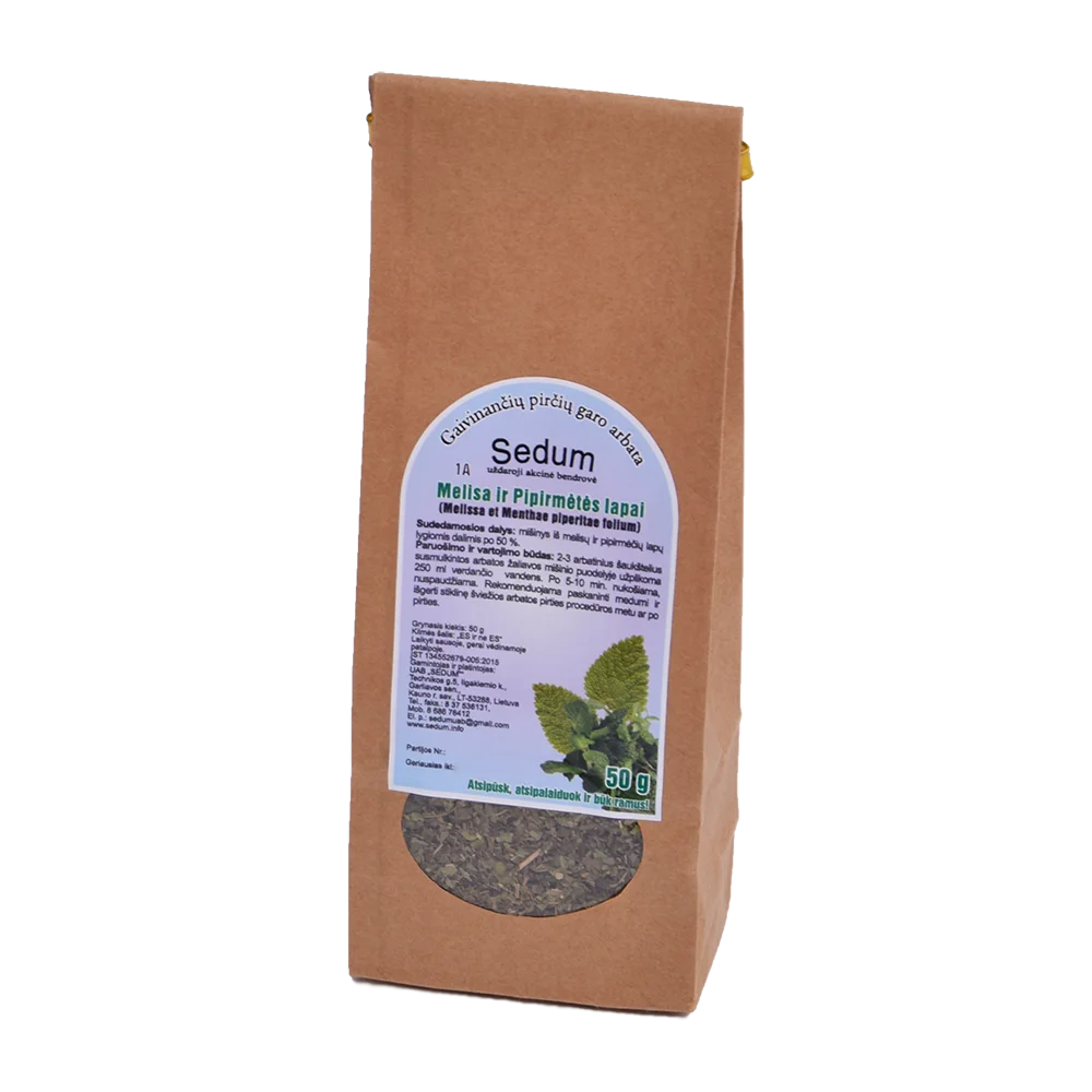 Sudedamosios dalys: Melisa 50%, Pipirmėtės lapai 50%